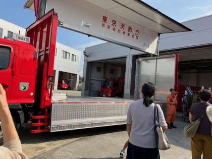 学校公開の午後からは学運協主催の地域防災研修が行われました。約40名が参加者し、震災や水害などでの救助作業映像や特別車両の数々を紹介していただきました。