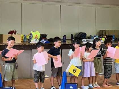 1.2年生は来週月曜日に行われる小小連携行事に向けて練習中。25日(月)には、鑓水小の2年生を迎えて、由木西小の自然をたくさん体験してもらいます。楽しいひとときになるよう、始めの会や終わりの会の練習にもしっかり取り組んでいました。