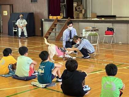 4年生は毎年、目の不自由な方と盲導犬について学ぶ授業があります。5歳になる盲導犬はとても穏やかで頼りになる存在だそうです。出掛ける時はもちろん、家の中でも物を取ってきてくれたり探してくれたりするとの事でした。あらかじめ連絡しておいた質問の回答を交えた話の中で、白杖を持って歩いている人がいたら、助けてくれると嬉しいですと言う言葉が心に残りました。