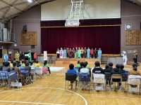 中学年が、体育館で20mシャトルランと反復横跳び、校庭ではソフトボール投げに取り組んでいました。