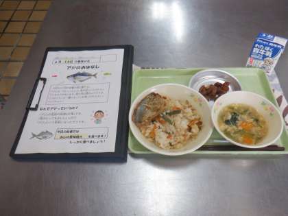 今日の献立から・・・旬を迎える「あじ」を香味焼きでいただきました。