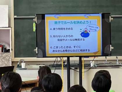 2.3校時は南大沢警察の方によるセーフティ教室がありました。高学年の部では、携帯電話での様々なトラブルについての事例を聞いたり、ビデオを見たりしました。