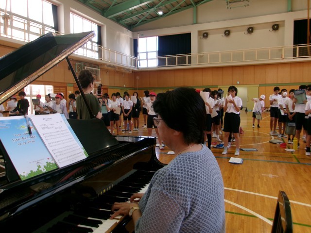 今日の平井先生との学習も、「歌声をひびかせて」のウォーミングアップから始まりました。3つのパートに分かれて美しいハーモニーを響かせます。高音もきれいに出せるようになってきました。メインの学習では、最初に、平井先生が6年生のために作ってきてくださった合唱曲にみんなで考えた題名を付けました。6つの候補から「明日という未来」に決まりました。曲のイメージにぴったりの題名で、ますます愛着がわいてきた様子です。下のパートの練習をした後、上のパートと合わせて歌いました。最後に録音をして自分たちの歌声を聞き合い、歌い方や音程を確かめました。素敵な歌声が届けられるよう頑張っています。