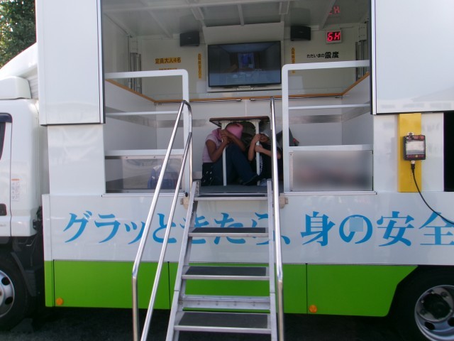 子どもたちは、初めは笑顔で体験していましたが、揺れが強くなると立っていられなくなり、必死で机の脚をもって強い揺れに耐えていました。初めての体験に楽しかったと感じる子もいたようですが、圧倒的に「怖かった」という感じる子が多くいました。改めて地震の恐ろしさを知ることができたとともに、万が一に備えての心構えも身に付けることができたようです。
