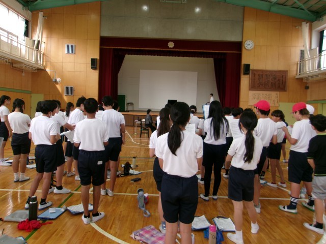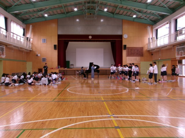 文化芸術鑑賞事業の取組も10回目となりました。平井先生のご指導を受けながら歌唱の取組をしてきました。今日も「由井一物語」と「わたしの足あと」の2部合唱を皮切りに、「歌声をひびかせて」で発声練習、そして前回タイトルが決まった「今日という未来」の2部合唱の練習をしました。上のパートと下のパートのどちらを歌うかは子どもたちが決めています。上のパートを歌う子の方が多いのですが、下のパートも練習を重ね、美しいハーモニーを作り出しています。次回は運動会の後になります。平井先生のコンサートの中で発表しようと、これから、デモテープを使って教室などで練習していきます。