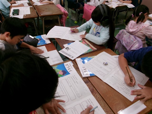 1年生の道徳の授業を参観しました。「こぐまのラッパ」の教材文を使って、あきらめないで最後まで粘り強く努力する気持ちについて考えました。音楽隊の一員のこぐまが、練習してもなかなか上達しないラッパの演奏に落ち込み、やめてしまおうかと考える場面では、今、子どもたちが頑張っている運動会の練習と照らし合わせて考える姿がありました。小鳥の声に励まされる場面では、役割演技をしながらこぐまの気持ちを考えました。こぐまがどんどん元気になって、ラッパの練習を続けようとする気持ちを上手に表現していました。そして、これから運動会でどのようことを頑張りたいかをキャリアパスポートに書いて締めくくりました。