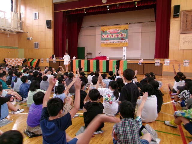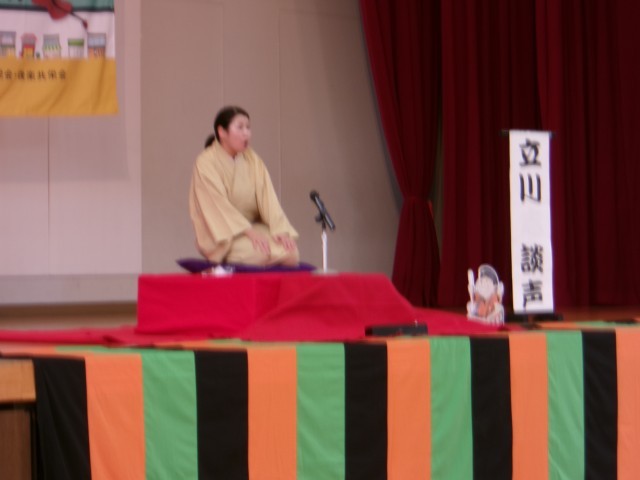 先日の北野ストリートフェスの催し物の一環として、本校の体育館で落語の公演がありました。立川談声さんと、立川志ら門さんの2本立てで、4・5年生が参加し、落語の世界を楽しみました。4年生では国語の時間に「落語」の教材を使って学ぶ単元があり、動画などで視聴していましたが、生の落語を見たことがある子は少なかったようで、どんなお話が聞けるのか楽しみにしていました。「転失気(てんしき)」というお話では、知ったかぶりの和尚さんと小僧の掛け合いが面白いお話で、お話が進むほどおかしな展開になり笑いを誘っていました。