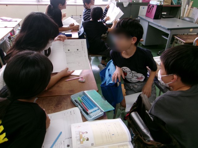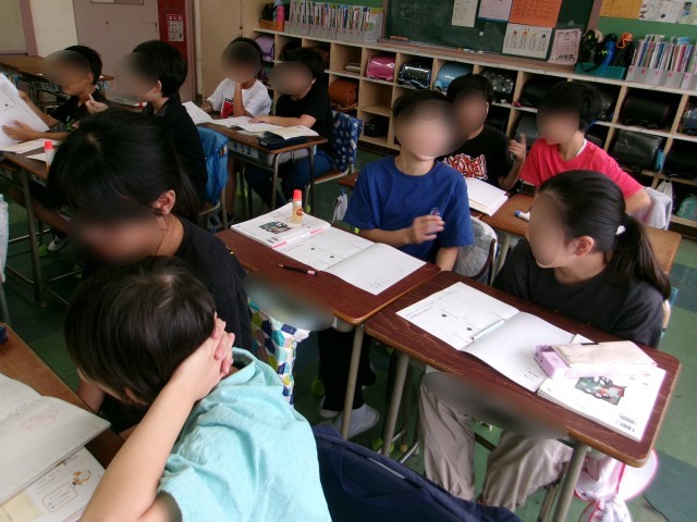 4年生の国語の授業を参観しました。「作ろう!『ショートショート』」の単元で、想像を広げながら短い物語づくりに取り組んでいます。今日は、不思議な言葉に関する特徴を集め、物語の概要を考える授業でした。不思議な言葉をたくさん集めた中から、登場人物や場面を設定し、考えたものの「よいところ」や「わるいところ」、その他の特徴について考え、友達と考えを共有しながら想像をさらに深めていました。中に入ると無重力になる箱や惑星型アイスクリーム、たらい船のブランコなど、子どもたちはこんなものがあったら楽しいだろうなと想像力を働かせながら楽しく考えていました。出来上がった「ショートショート」を早く読みたいです。