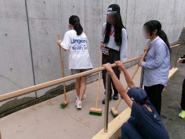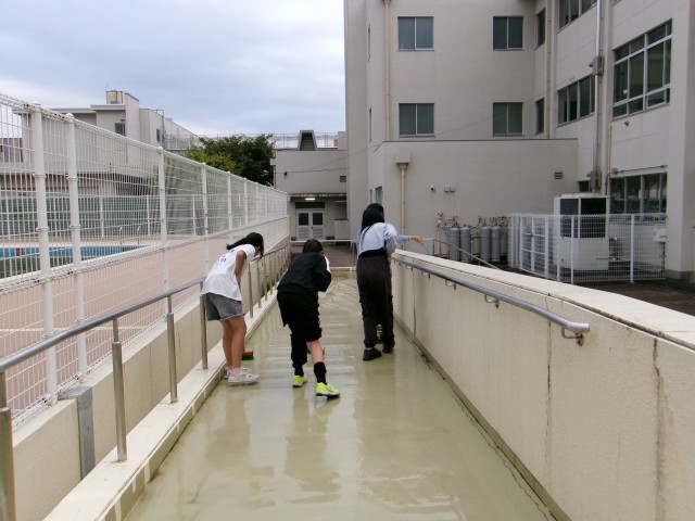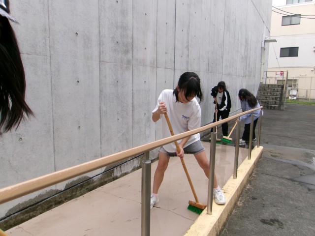 前日準備が終わった後、6年生の子どもたち数名が、「もっときれいにしたいです!!」と申し出てくれて、体育館の裏やプール周辺などをきれいにする作業をしてくれました。お客様を気持ちよく迎えるためにと一生懸命働く姿が素敵でした。何より、楽しみながら清掃活動に取り組んでいるのがいいです。頼もしい6年生です。