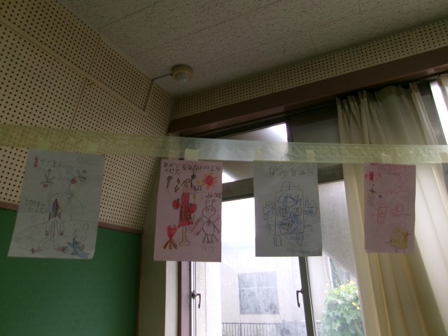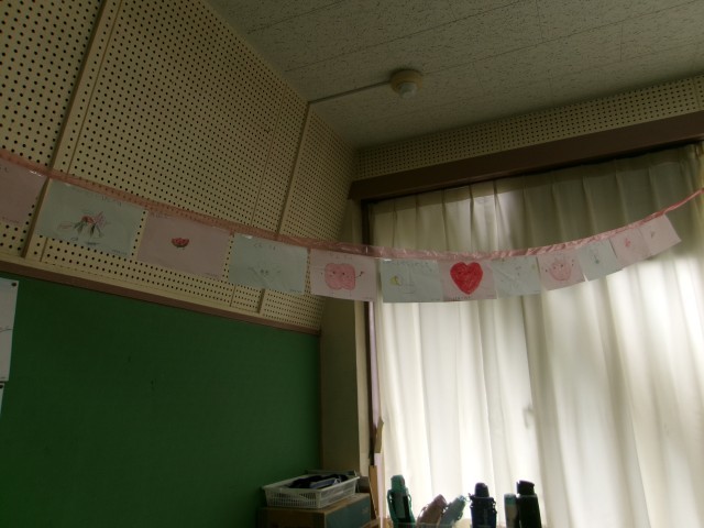 1年生にとって初めての小学校での運動会です。学年の取組として、自分たちのチームの応援旗を作りました。自分たちでオリジナルのチームキャラクターを考えて、楽しみながら制作しました。運動会を本当に楽しみにしている様子が伝わってきました。