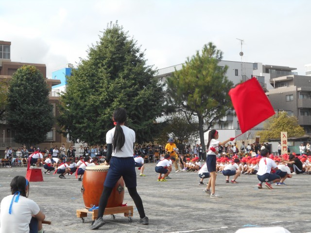 運動会の見どころの一つでもある応援合戦では、応援団はこの日に向けて休み時間にも練習を重ねてきました。「ゴーゴーゴー」も演奏に合わせて力いっぱい歌い応援合戦に勢いを付けました。また、応援団の掛け声に合わせて、手拍子や声援をお互いに送りました。