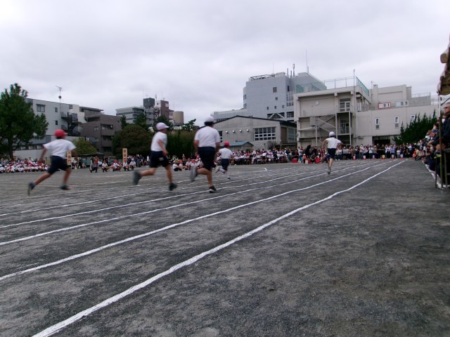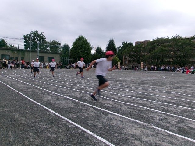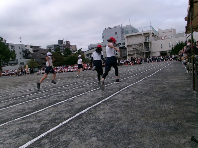 次は5・6年生の100m走です。高学年の子どもたちがゴールを目指して力強く走る姿は本当にかっこいい!低学年の応援席から声援が沸き起こります。たくさんの応援に見守られながら、力強い走りを見せてくれました。6年生にとっては小学校最後の運動会での100m走です。6年間の成長を見せてくれるような力強い走りに、下級生たちも圧倒されていました。かっこいい6年生にあこがれを持たせてくれるような素晴らしい走りを見せてくれました。