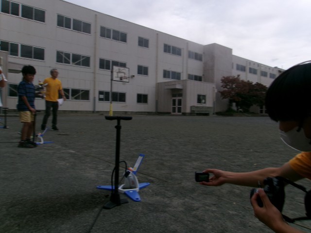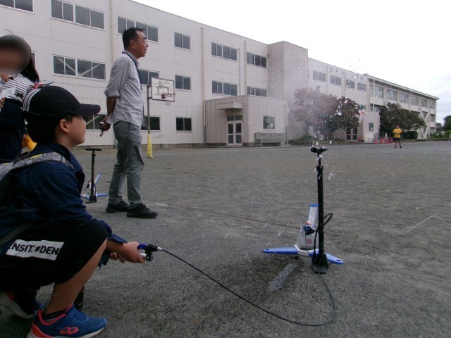 出来上がったマイペットボトルロケットをもって校庭で飛ばしてみました。最初はなかなか飛距離が伸びなかった子も、だんだんコツをつかんで遠くまで飛ばすことができるようになりました。最長で70m越えの記録も出て、大盛り上がりの一日となりました。地域子ども子供会育成団体の皆さんの協力も得ながら、楽しい大会を開催することができました。ありがとうございます。