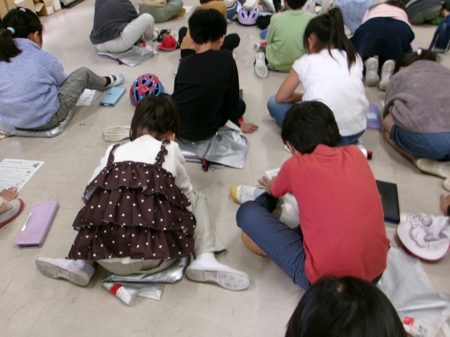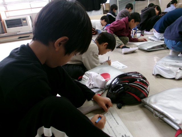 後半は、DVDを使って自転車に乗車するときに気を付けなければならないことについての確認をしました。安全確認をすることはもとより、一時停止をしっかりと守ること、スピードを出しすぎないこと、そしてヘルメットはきちんと装着することなど具体的な場面を振り返りながら学びました。そして最後は交通ルールについてのテストをしました。テストに合格すると、初めて「自転車免許状」がもらえます。全員合格し、無事「自転車免許状」をもらうことができました。今日学んだことを生かして安全に自転車に乗りましょう。