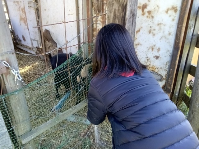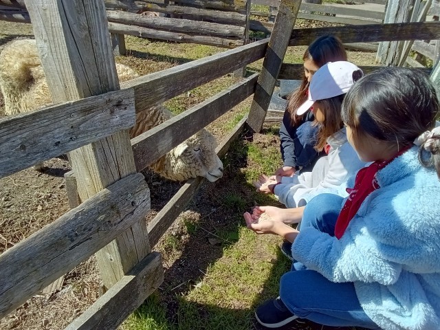 家畜の餌やりでは、ヤギや豚に餌をあげました。子どもたちの姿を見て、顔を乗り出しておねだりするヤギが可愛らしく、夢中になって餌やりをしていました。
