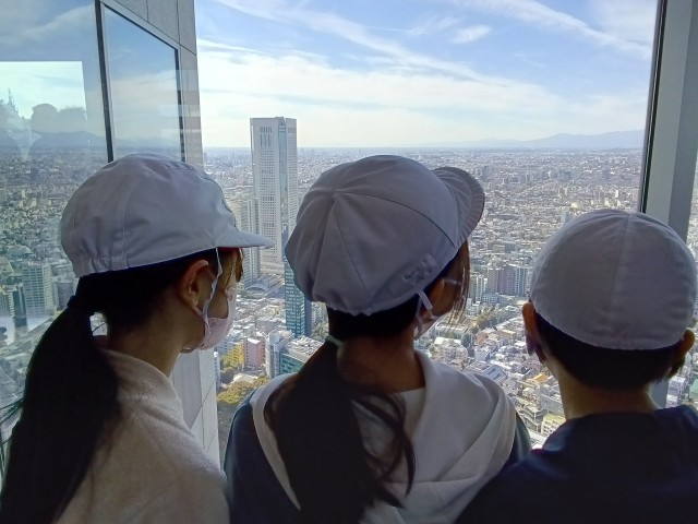 都庁では議事堂、展望室の見学をしました。お天気もよく、都心の様子がよく見渡せます。八王子との違いをしっかりと確かめます。