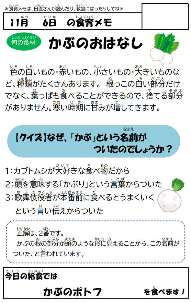 11月6日(木)の給食