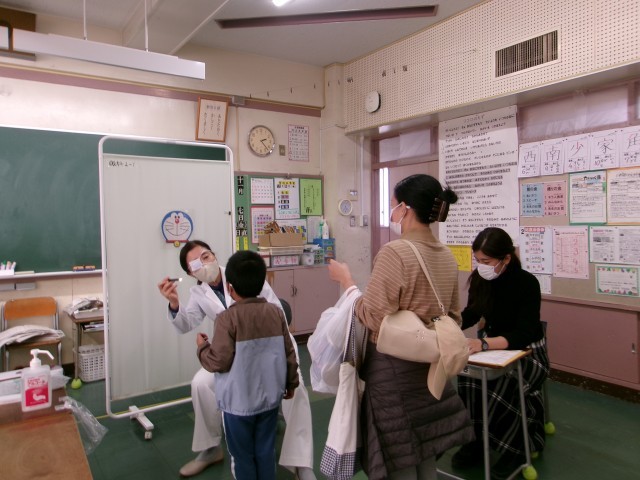 お医者様の前でも、しっかりとお名前を言い受診する姿を見て、ほめられている子もいました。来年、入学するのを、由井一小の子供たちも先生たちもみんな待っています!