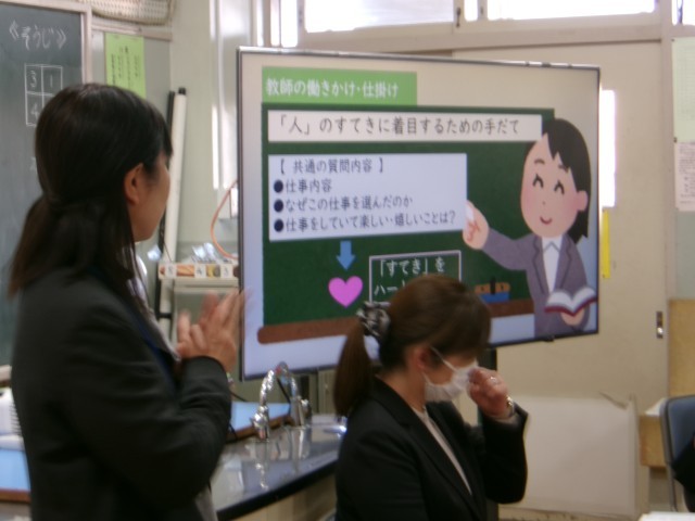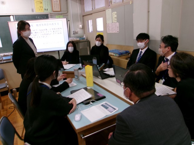 授業後の研究協議会では、低学年ブロックから今回の生活科の授業づくりについて提案がありました。①児童が「町のすてきなところ」を見つけられる活動内容であったか。②ICT機器を使った活動は児童の学習に適切だったか。を視点に協議しました。児童が自身のタブレットで写真を撮影したり、インタビューしたりと主体的に学習に取り組みことで、身の回りの場所や町の人の働きに気が付くことができたこと、そして、温かく接してもらったことで町の人たちの優しさに気が付くことができたことについての評価がありました。また、QRコードの活用も、子どもたちの意欲的な学習につながったことが確認されました。講師の、生活・総合の指導教諭である買田まりこ先生からも、生活科の学習指導要領の内容から、今日の授業の振り返りと、まち単元から考える生活科の「見方・考え方」の指導についてご指導いただきました。まちたんけんから得られた「たくさんの人が利用したりかかわったりしている」身近な施設の役割や機能を、自分の生活とつなげて捉え、自分自身の生活について考えようとする子供を育てていくことについて教えていただきました。まさに「生活科」を子供自身の「生活化」にしていく視点について学ぶことができました。
