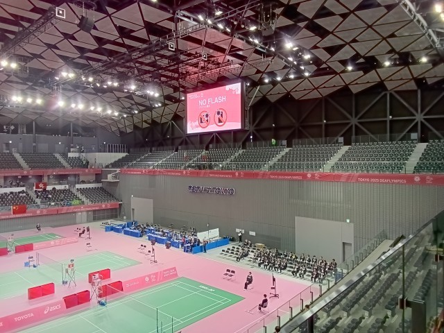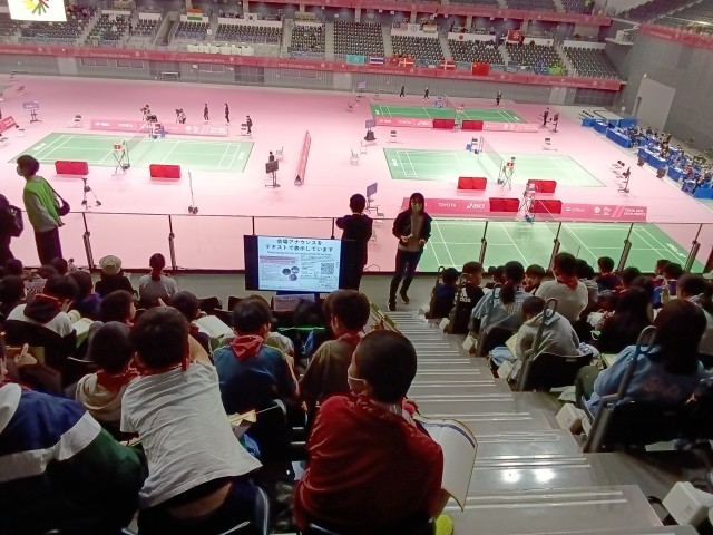 会場の様子です。試合が始まる前に、ワークブックを使って気がついたことを記入しました。デフリンピック新聞にまとめる予定です。