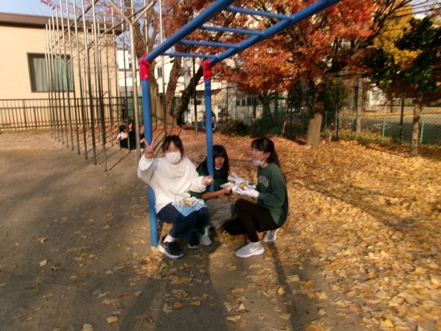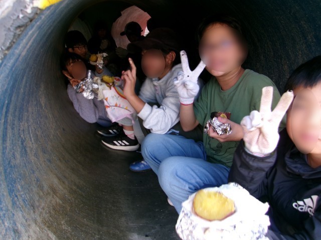 お昼頃はお天気が危ぶまれましたが、焼き芋が出来上がるころにはお日様も顔をのぞかせました。秋の自然をいっぱいに感じながら、熱々の焼き芋をほおばる姿がありました。今年も子どもたちに幸せな体験をさせてあげることができました。保護者や地域の皆様、おやじの会の皆様には、ご準備などたくさんお世話いただきました。