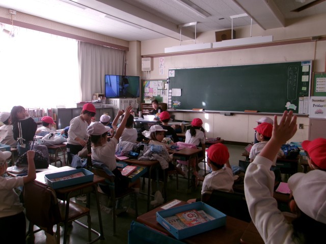 今日の児童集会は、保健委員会の発表です。動画を使って、「けがの予防」「トイレの使い方」「正しい手洗いの仕方」についてまとめ、発表してくれました。どんなところでケガをしやすいかを調査し、石山やブランコの使い方について説明がありました。1年生の教室でも動画を見ながら、「そのブランコの乗り方、危ないから駄目だよ」という声が上がっていました。また、正しい手の洗い方では、手洗いの歌を使って説明しました。その場で一緒に動作しながら洗い方を確認する姿がありました。