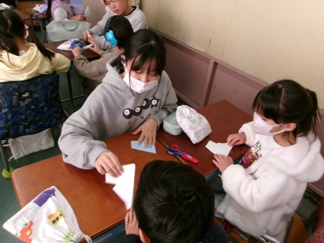 今日の児童集会では、縦割り班に分かれて展覧会の全校制作に取り組みました。テーマは「フレンドシップクリスタル」。雪の結晶をモチーフに、由井一小の子どもたちの友情や絆を切り紙で表します。6年生があらかじめ作り方を覚え、縦割り班ではリーダーとなって下級生に教える役割を担ってくれました。思い思いの切り方で雪の結晶を表しました。教え合いの中で、温かな友情や絆が生まれていました。当日は、体育館中に張り巡らされたクリスタルが展覧会を華やかに飾ってくれることでしょう。