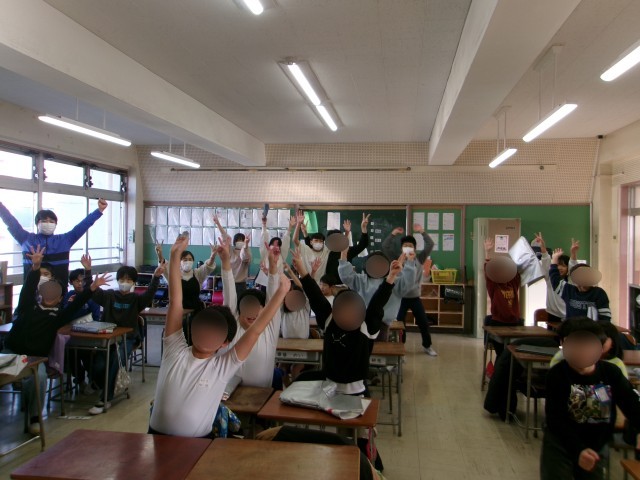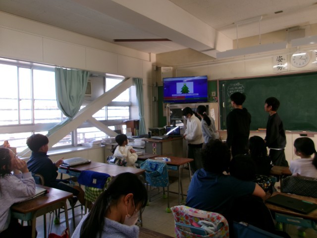 2学期最後のたてわりロング集会は、たて割り班対抗カフート大会をしました。集会委員会の子どもたちが考えた学校やクリスマスに関するクイズを出題し、正解数や正解する速さで競いました。学校クイズは創立記念日や児童数、バスケットゴールの数を問う問題や、今年学級閉鎖になった学級数など、なかなかの難問もあり、赤だ!青だ!と回答が割れる場面もありましたが、正解しても、不正解でも大いに盛り上がっていました。15班が見事優勝!!大きな歓声が上がっていました。