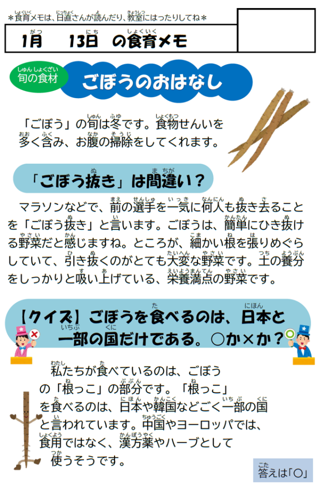 1月13日(火)の給食