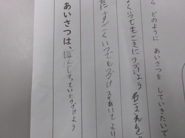 1月の「おはようの日」の今日、児童会と打越中学校生徒さんたちによるあいさつ運動がありました。登校してくる子どもたちだけでなく、行き交う地域の方たちにも子供たちの元気な声が届けられ、冬晴れの気持ちの良い朝のスタートになりました。1月の生活目標「自分からあいさつしよう」を多くの子どもたちが実践してくれていました。また、1年生の先生から、道徳の時間に「あいさつの大切さ」について学習した際に子どもが書いたプリントを見せてもらいました。そこには、「あいさつは、ぼんじてっていに つづけよう」と書かれていました。2学期の全校朝会で、「当たり前のことを徹底してやり続ける」というお話を覚えていてくれたことに感動しました。今年もあいさつを「凡事徹底」して、素敵な由井一小にしていきましょう。
