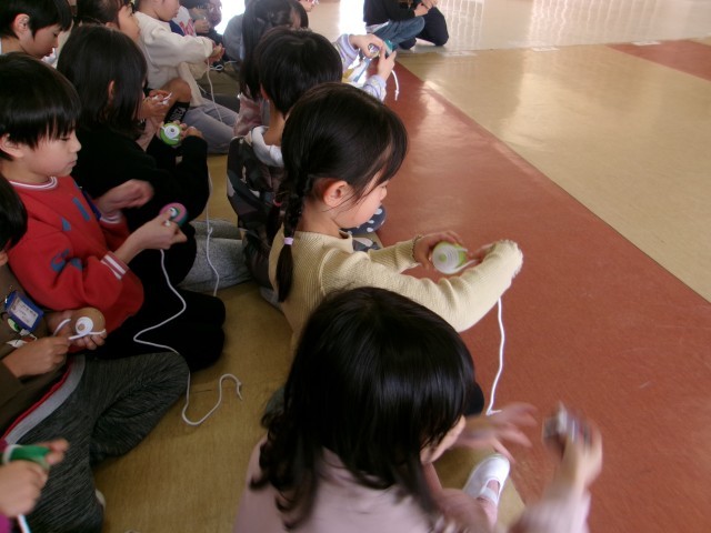と嬉しそうな笑顔を浮かべていました。回せるようになると、友達とどちらが長く回っているか競争したりと遊びの輪が広がっていました。