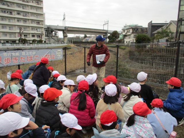 湯殿川では、昔、ゾウの化石が発見されたことや河童伝説があることなど不思議で楽しいお話も聞かせていただきました。「うちの近くに、河童公園がある!関係あるのかな?」と興味をもって聞く姿がありました。また、長沼にレンガ工場があり、そのレンガを運ぶためにトロッコ電車が通っていたお話から、由井一小の赤れんが門との関係に話題が広がるなど、普段気が付かなかった地域の様子を改めて見直す機会になったようです。これから自分たちの興味関心に合わせて、さらに調べ学習を進め、わかったことを2年生に発表する予定です。今から、何について調べようかと学習を楽しみにしていました。