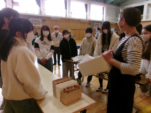 後半は、それぞれのブースに分かれて、さらに詳しい仕事内容を聞いたり、実際に仕事の一部を体験させていただいたりしました。キャビンアテンダントの方からは、飲み物のサービスの仕方について教えていただきました。「お客様の目を見て」「笑顔で」「一言添えて」など、相手の立場になって気持ちよくサービスが受けられるように気を付けていることや、緊急時に備えて常に訓練を欠かさないことなど、安全で安心、そして心地よく空の旅を過ごしていただけるようにしていることなどのお話がありました。また、警察官の職務質問の仕方やイラストレーターの仕事、収納のポイントや極真空手体験など、めったにできない様々な体験をさせていただきました。講師の方から教えていただいたことをびっしりとメモを取る姿がありました。