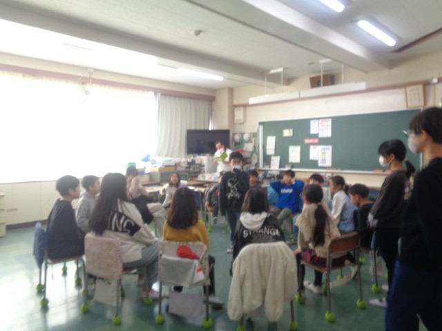 今日の児童集会はたてわりロング集会です。教室グループと校庭グループに分かれてたて割り班で仲良く遊びました。教室グループでは、椅子取りゲームやフルーツバスケット、ハンカチ落としや爆弾げーむばどで楽しむ姿がありました。また、気温も上がった今日は校庭での遊びも気持ちよく、のびのび遊ぶ姿が見られました。6年生と一緒に過ごせるのもあと少しです。温かな交流を通して、思いやりの気持ちをはぐくんでいきます。