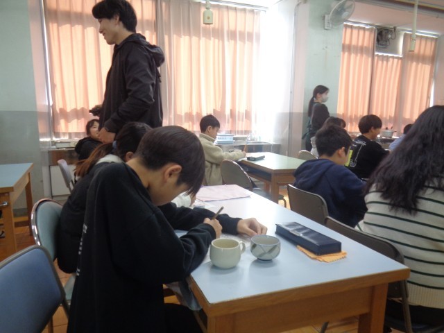 次に、鰹節、昆布、いりこ、しいたけの4種類のだしで撮った味噌汁を飲み比べてみました。「海の香りがする」「魚っぽいな・・・」「わたしは、この味が一番好き!」など、だしの味がわかるようになると、一つ一つのだしの味の違いをじっくり感じながら、「味」「香り」「おいしさ」を言葉に表しながらワークシートに記入していました。うま味とはどんな味なのか。それは、子供たちが体験した『だし』の味であり、現在では世界共通の言語(UMAMI)となっていることや、だしとだしが合わさることでおいしさがアップする効果があることなどを教えてもらいました。今日の授業を通して、だしの役割を知るとともに、和食についても興味をもつことができたようです。