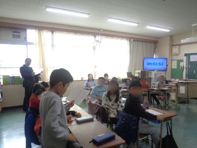 3年生の道徳の授業を参観しました。「幸せの王子」の教材を使って、「美しい心」について考えました。南国へ急ぐ一羽のツバメが、王子から身に付けている宝石を貧しい人へ届けるように頼まれます。ツバメは南国へ帰るのを遅らせ王子の願いをかなえ、そのうちに王子のそばにとどまることを決意するという物語です。「最初は早く南の国に行きたいと考えていたツバメが、どうしてとどまることにしたのか」という問いかけに、「王子がずっと言うから仕方なく…」と考えていた子どもも、「困っている子どもを助けるために自分の目や体の金箔をはがして与える王子の心が美しいと思ったんじゃないかな」「ツバメも、王子の行動を見て、自分から残ることを決めたんだと思う」という意見を聞いて考える姿がありました。王子の人を想う美しい心に触れ、「幸せに生きる」ことを選択したツバメの心の動きを考えることができました。