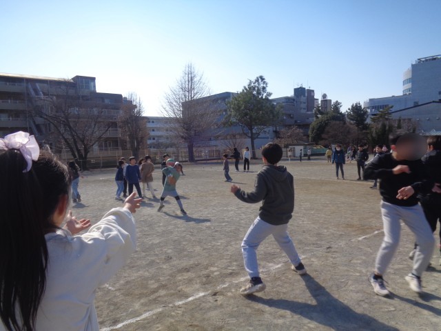 今日の児童集会はゲーム集会です。「下剋上ドッジボール」という遊びで、上級学年対下学年が、コートの広さやルールを工夫しながらドッジボールで対戦します。上級学年のコートが狭く、下学年のコートは広く設定されていて、ボールも3つと、どこからボールが飛んでくるかわからず、スリル満点のドッジボールです。果敢にも上級生に立ち向かうか学年の子どもたちでしたが、さすが上級生。ボールの投げ方も逃げ方も一枚上で、勝負は上級生が圧倒的な強さを見せていました。勝っても負けても笑顔いっぱいでかかわりあう姿がありました。