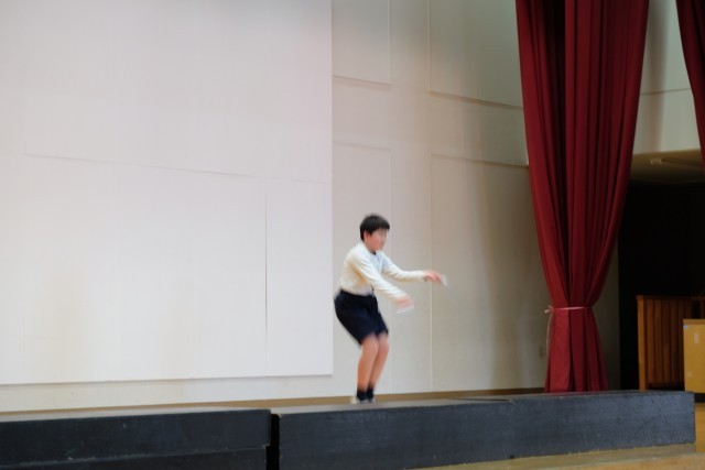 縄跳びの演技では、「ハイ!ハイ!ハイ!」と掛け声もかかり、引っかかってしまっても、「がんばれー!!」と励ましの声援が飛ぶなど、温かい雰囲気の中それぞれが個性を発揮し、のびのびと発表している姿が印象的でした。