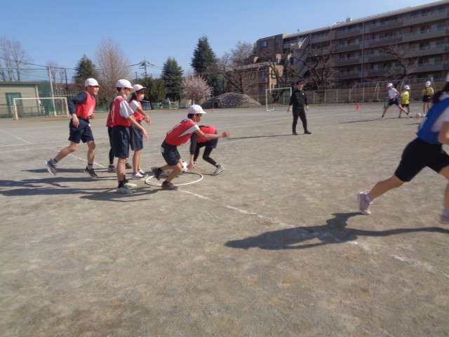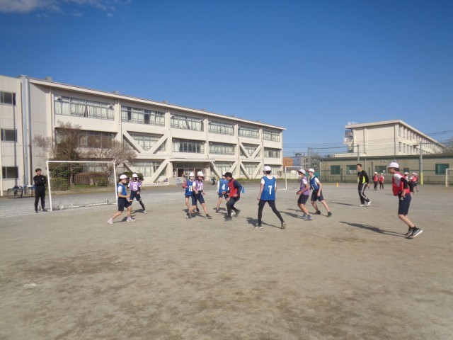 サッカーのミニゲームでは、大学生も交じって白熱した試合になりました。「ナイス!」「いいね!」とたくさん褒めてもらい、楽しく試合を行っていました。ゴールを決めてガッツポーズも。笑顔いっぱいでプレーしている姿が印象的でした。最後の振り返りでは、「また一緒にサッカーができて楽しかった」「さっかーをやったことがない人も楽しめるミニゲームがあって楽しめた」など感想を伝えていました。暖かい陽気の中、のびのび体を動かし、楽しい交流となりました。