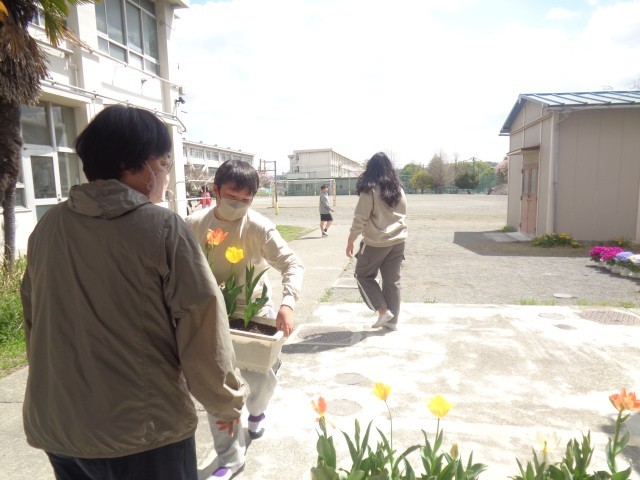 明日の入学式を迎えるにあたって、6年生が入学式の会場や教室の準備をしてくれました。進級した6年生の初仕事です。入学式の会場となる体育館をピカピカに掃除し、椅子並べをしてくれたり、会場が華やかになるようにプランターを飾ってくれたりと、心を込めて会場準備に取り組んでいました。