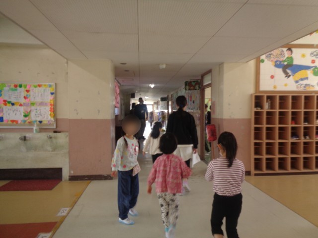 「水筒は、ロッカーの上においてね。一人でできる?」