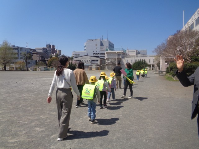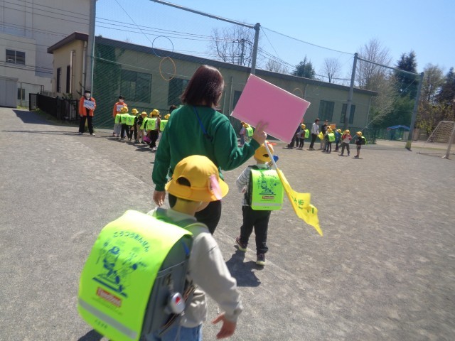 今週の下校は同じ方向に分かれて先生たちが見送ります。グループごとに名前を確認し、一緒に帰りました。コースごとに色分けされたリボンを確認しながら、お名前を呼ばれた人から鉄に並びました。コースごとに先生たちが見守りに入り、一列に並んで下校しました。「先生、また明日ね!」と元気に挨拶して帰るほほえましい姿もありました。明日も元気に学校に来てね!