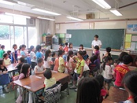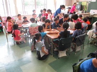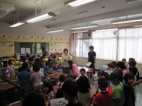 5月11日。明日行われる2年生との「学校探検」の顔合わせを行いました。2年生から自己紹介があり、それをもとに「自分クイズ」をしたり、手作り名札をもらったりしました。明日の学校探検が楽しみです。