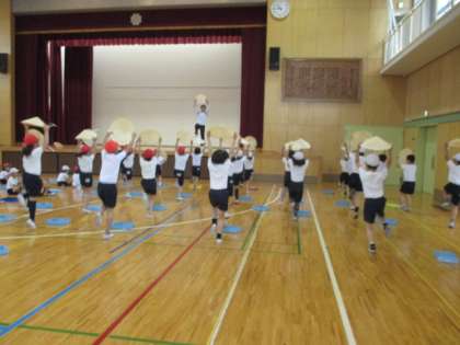 今日は今週頑張ったご褒美で、本番用の笠を持っての踊りに挑戦しました。