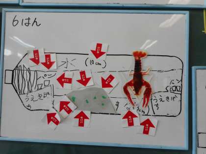 本時のねらい ザリガニについて調べたことをもとにすみかについて話し合い、ザリガニへの思いを深める。