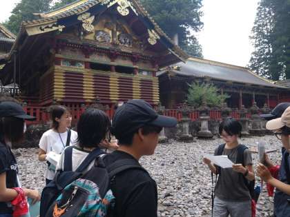 眠り猫に想像の象、三猿など見どころがたくさんありました。蒸し暑い中でしたが、みんながんばって課題をクリアすることができました。