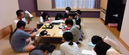 お部屋に着いたら、さっそく係りの打ち合わせです。みんなテキパキ動いています。