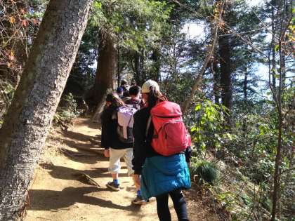 まだまだ続く山頂までの道。さすがに疲れた〜の声があちこちから聞こえてきます。