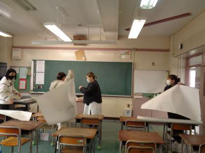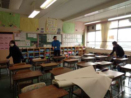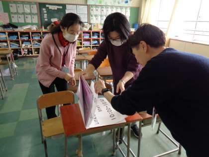 学校運営協議会が主体となっている漢字検定を実施しました。会場準備や試験監督のお手伝いを呼びかけたところ、たくさんの保護者、地域の方が集まってくださいました。会場設営や検定の進め方について全体会を行った後、各会場に分かれて準備をしました。