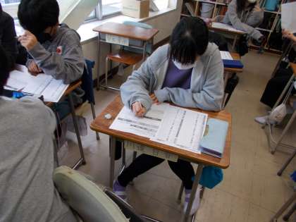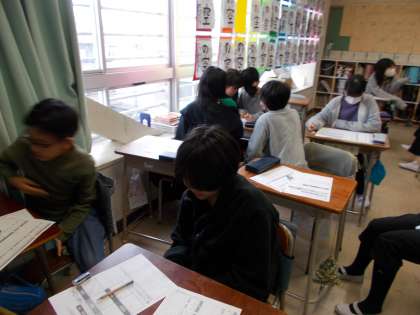 最初に映像資料を見ながら、バランスよく食べることがなぜ必要なのかについて、日頃からやっている運動と関連付けてながら、バランスの良い食事について感が出ました。スポーツの種類によって、それぞれの運動機能を強化する栄養素が違うことを教えてもらいました。自分の生活と照らし合わせながら考える姿がありました。